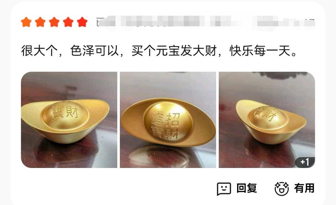 无独有偶,在线上售卖的一些带有“情绪价值”的小物件也颇受消费者欢迎。南京消费者孙先生介绍,公司最近在准备年会抽奖,采购了一些别致的小物件,比较喜庆且讨口彩。比如铜金元宝、小银鱼、福包子,价格都在百元之内。其中金元宝和福包子都是铜制的,造型喜庆,皮色似金。记者搜索发现,网上售卖这些铜金饰品的旗舰店,评分也达到了4.7分(5分制)。